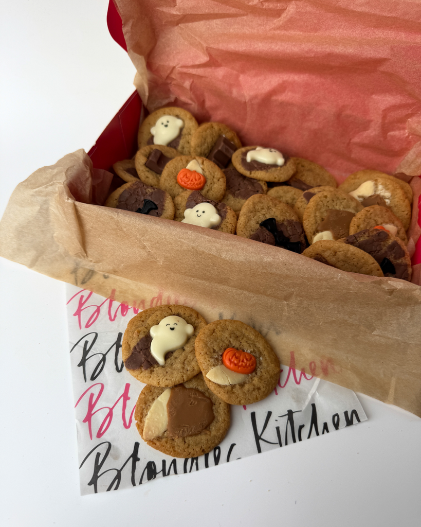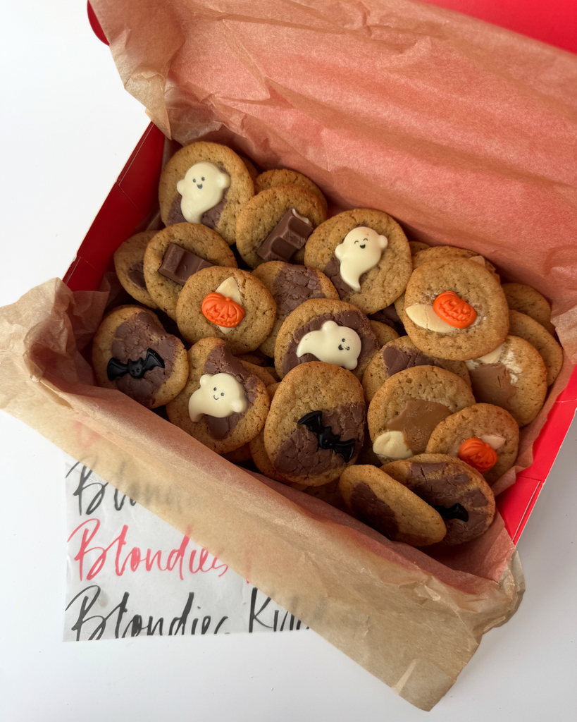 Phosphate)) Butter (MILK), Milk Chocolate(7%)(Sugar, Cocoa Butter, Whole MILK Powder, Cocoa Mass, Emulsifiers (SOYA lecithin), Natural Vanilla Flavouring), Kinder Bars(7%)(Milk Chocolate, Sugar, Whole MILK Powder, Cocoa Butter, Cocoa Mass, Emulsifier (SOYA Lecithin, vanillin), Filling (Sugar, Skimmed MILK Powder, Palm Oil, Concentrated Butter, Emulsifier (SOYA Lecithin, vanillin))), Emulsifiers (SOYA lecithin), Natural Vanilla Flavouring), Lotus Biscoff Spread(5%)(Original caramelised biscuits (WHEAT flour, sugar, vegetable oils (palm oil & rapeseed oil), candy sugar syrup, raising agent (sodium hydrogen carbonate) SOYA flour, salt, cinnamon)), rapeseed oil, sugar, Emulsifier (SOYA lecithin), acid (citric acid)), White Chocolate(4%) (Sugar, Cocoa Butter, Whole MILKPowder, Cocoa Mass, Emulsifiers (SOYA lecithin), Natural Vanilla Flavouring),Caster Sugar, Soft Brown Sugar, EGGS, Vanilla Paste (Sugar, Water, Bourbon Vanilla extract, Spent Vanilla Pods, Thickener (tragacanth gum), Caramel (sugar, water), Preservatives (potassium sorbate)), Baking Powder (WHEAT Flour, Calcium Carbonate, Iron, Niacin, Thamine), Raising Agents (Sodium Acid Pyrophosphate, Sodium Bicarbonate), Salt