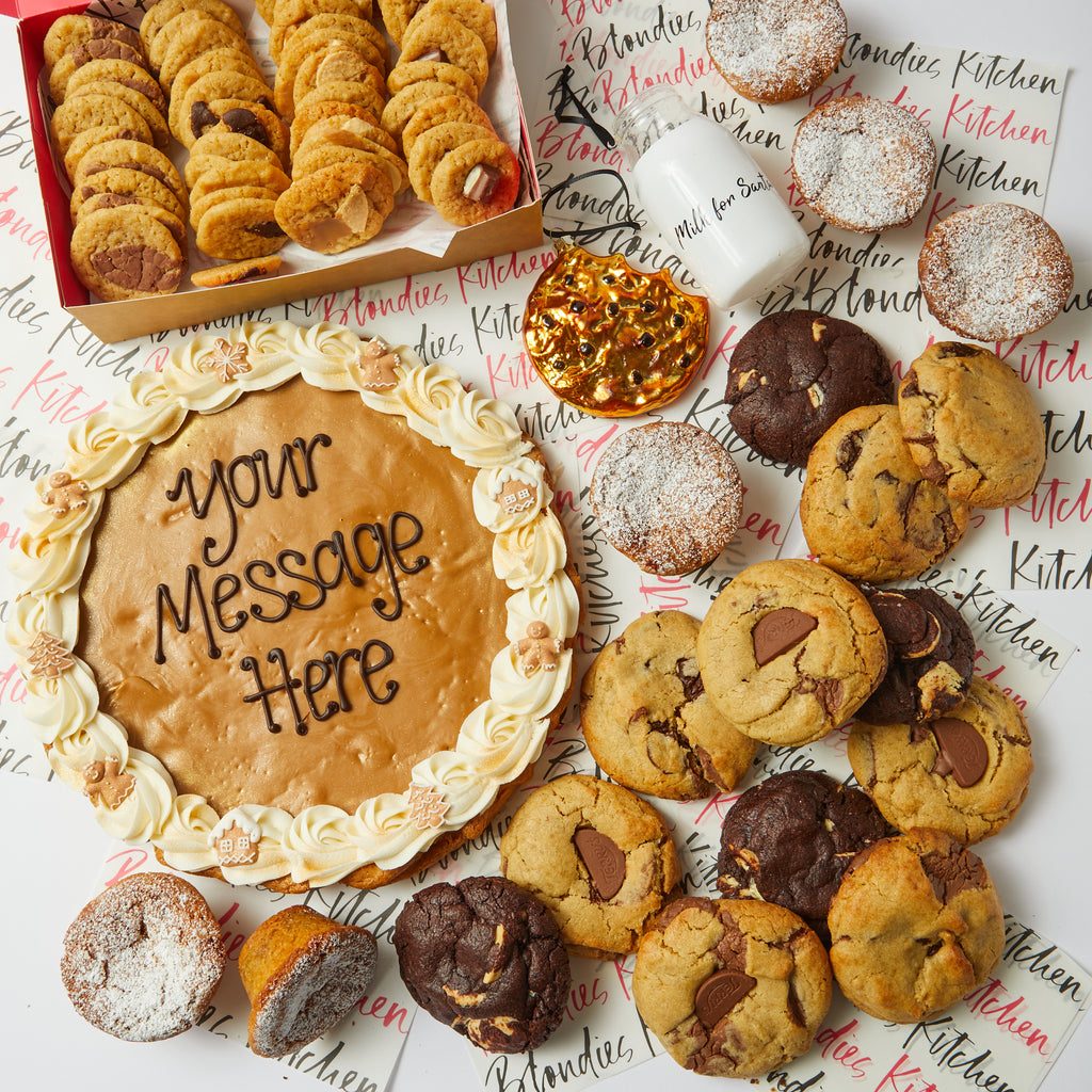 Ingredients: Plain Flour (WHEAT Flour, Calcium, Iron), Soft Brown Sugar, Milk Chocolate(Sugar, Cocoa Butter, Whole MILK Powder, Cocoa Mass, Emulsifiers (SOYA lecithin),Natural Vanilla Flavouring), Butter (MILK), Caster Sugar, EGGS, Dark Chocolate (Sugar, Cocoa Butter, Cocoa Mass, Emulsifiers (SOYA lecithin), Natural Vanilla Flavouring),Vanilla Paste (Sugar, Water, Bourbon Vanilla extract, Spent Vanilla Pods, Thickener (tragacanth gum), Caramel (sugar, water), Preservatives (potassium sorbate)), Salt, Baking Powder (WHEAT Flour, Calcium Carbonate, Iron, Niacin, Thamine), Raising Agents (Sodium Acid Pyrophosphate, Sodium Bicarbonate).