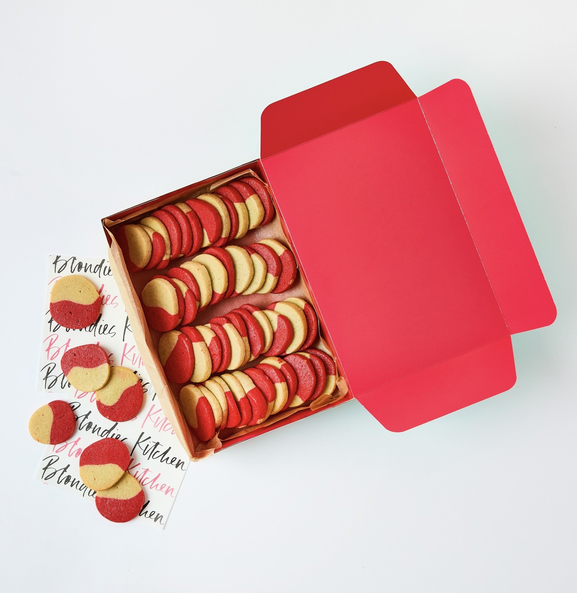 A box of Mini Shortbread cookies - Candy Cane coloured for that extra bite of holiday magic