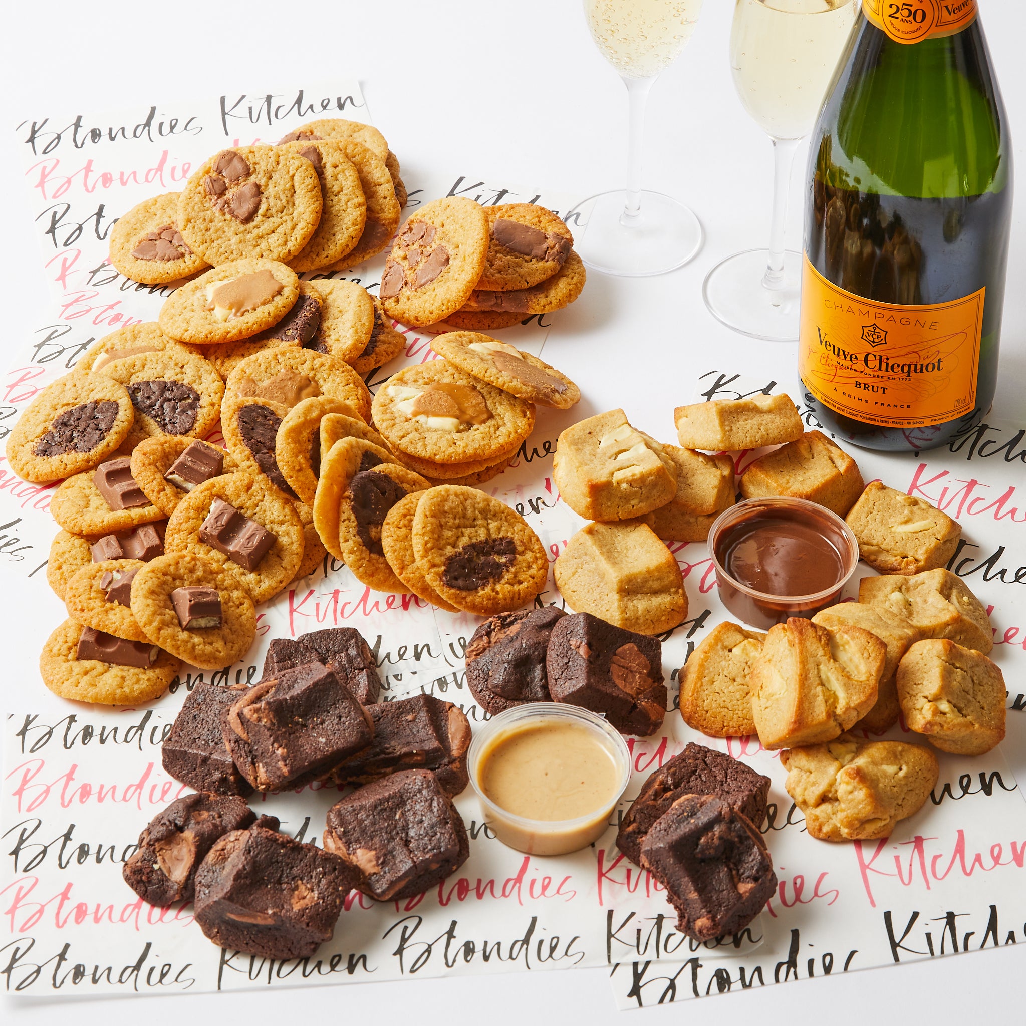 Plain Flour (WHEAT Flour, Calcium, Iron), Soft Brown Sugar, Butter (MILK), Caster Sugar, EGGS, White Chocolate (10%) (Sugar, Cocoa Butter, Whole MILK Powder, Cocoa Mass, Emulsifiers (SOYA lecithin), Natural Vanilla Flavouring), Milk Chocolate (10%) (Sugar, Cocoa Butter, Whole MILK Powder, Cocoa Mass, Emulsifiers (SOYA lecithin), Natural Vanilla Flavouring), Vanilla Paste (Sugar, Water, Bourbon Vanilla extract, Spent Vanilla Pods, Thickener (tragacanth gum), Caramel (sugar, water), Preservatives (potassium sorbate)), Baking Powder (WHEAT Flour, Calcium Carbonate, Iron, Niacin, Thamine), Raising Agents (Sodium Acid Pyrophosphate, Sodium Bicarbonate) Salt.*White Hazelnut Chocolate Dip (Sugar, Vegetable Oil (Sunflower Oil), Skimmed MILK Powder, HAZELNUTS, MILK Whey Powder, LACTOSE, Emulsifier (SOYA Lecithin), Flavour, Antioxidant, Ascorbyl Palmitate & Vitamin E)). *Milk Hazelnut Chocolate Dip ((64%) Belgian MILK Chocolate (Cocoa Solids 34% Min, MILK Solids 22.5% Min) (Sugar, Cocoa Butter, Whole MILK Powder, Cocoa Mass, Emulsifier: SOYA Lecithin; Natural Vanilla flavouring), (36% Nocciola Vela Paste (Sugar, Vegatable Fat: Palm; Vegetable Oil: Sunflower; Fat Reduced Cocoa Powder, Skimmed MILK Powder, HAZELNUTS, Emulsifier: SOYA Lecithin, Sorbitane tri stearate, E471; Flavour & Antioxidant, Ascorbyl Palmitate & Vitamin E)