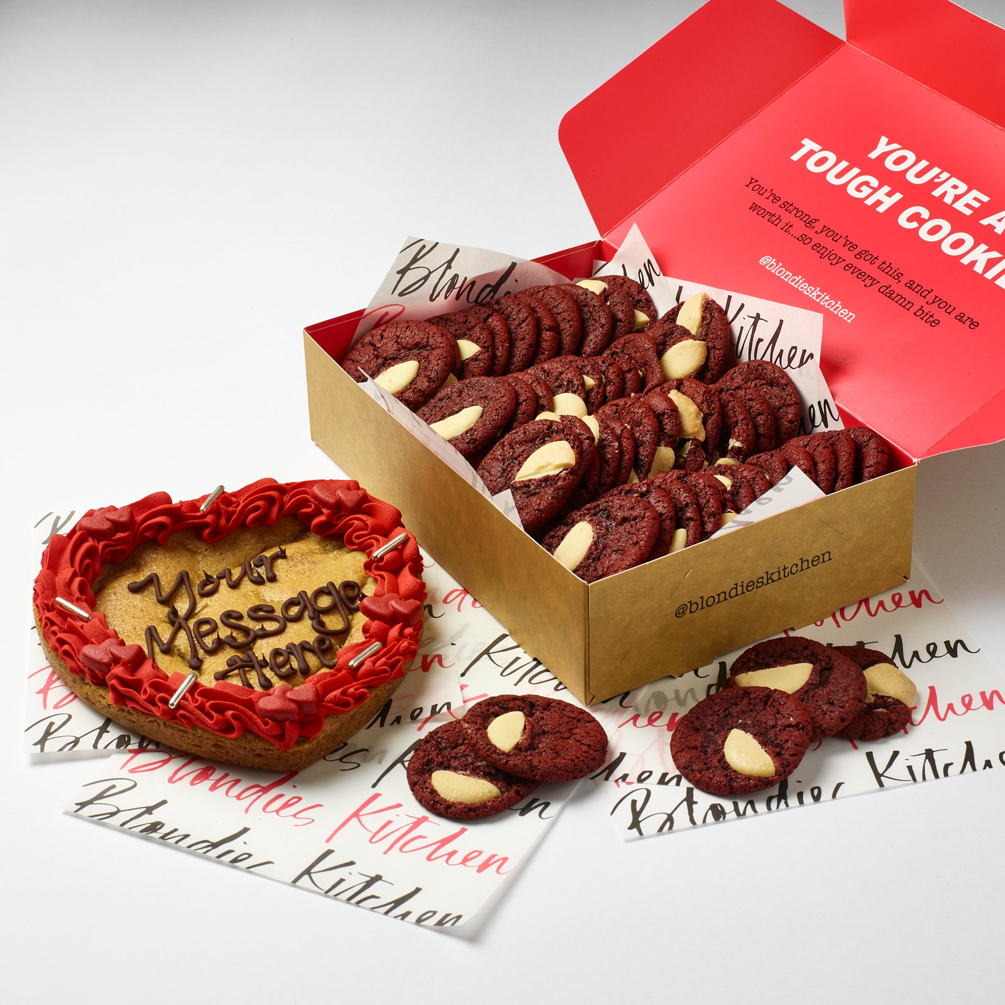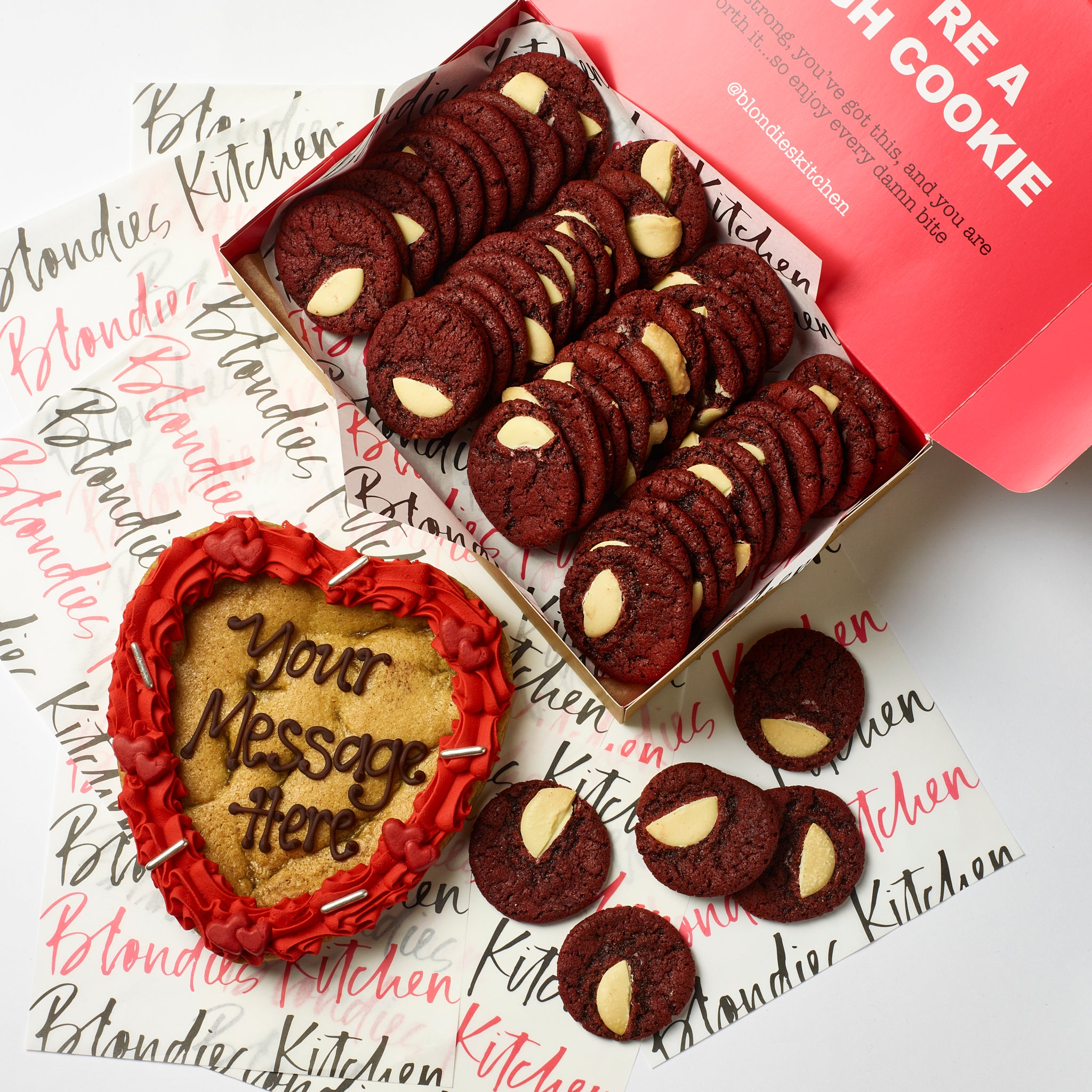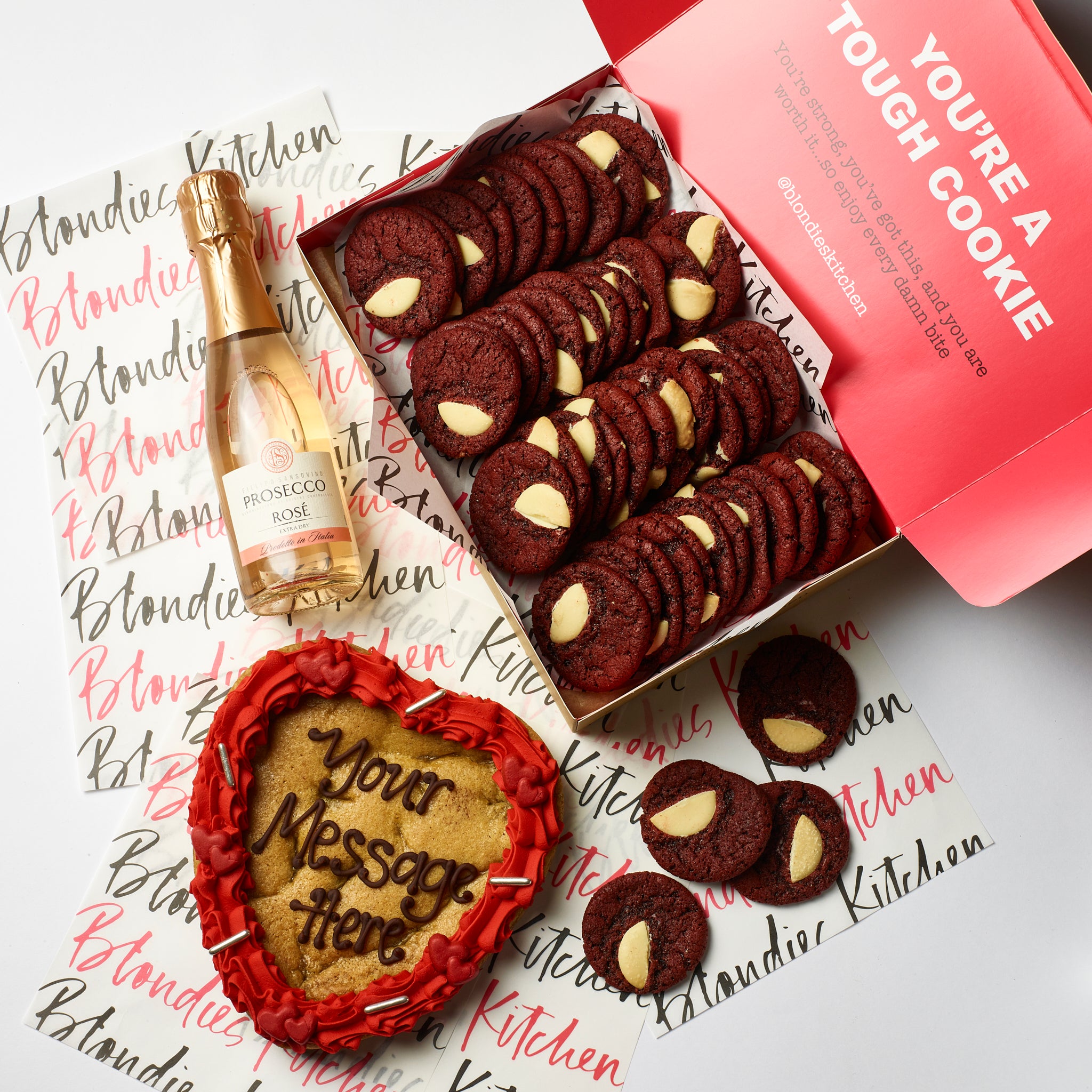 RED VELVET & WHITE CHOC BITSEIZE COOKIES: Self-Raising Flour (WHEAT Flour, Calcium, Iron, Vitamin B3, Vitamin B1), Raising Agents (Sodium Hydrogen Carbonate, Mono Calcium Phosphate),Butter (MILK), White Chocolate (10%)(Sugar, Cocoa Butter, Whole MILK Powder, Cocoa Mass, Emulsifiers (SOYA lecithin), Natural Vanilla Flavouring), Caster Sugar, Soft Brown Sugar, EGGS, Vanilla Paste (Sugar, Water, Bourbon Vanilla extract, Spent Vanilla Pods, Thickener (tragacanth gum), Caramel (sugar, water), Preservatives (potassium sorbate)), Red Food Colouring (Glycerol E422, Propylene Glycol. E551, Food colouring E124, E129)),Cocoa Powder,Baking Powder (WHEAT Flour, Calcium Carbonate, Iron, Niacin, Thamine), Raising Agents (Sodium Acid Pyrophosphate,