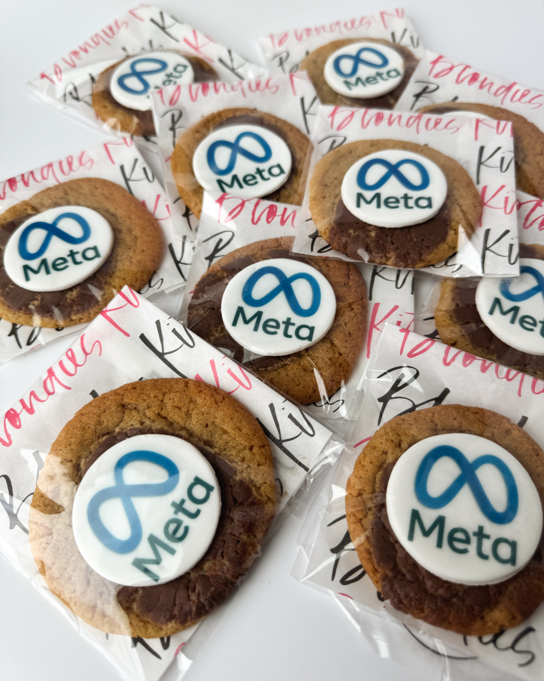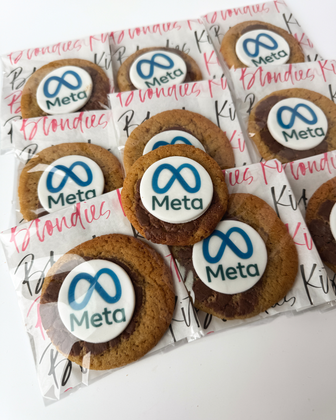 Mini Milk Chocolate Signature chewy cookies topped with an iced fondant disc including your image, logo or message of choice. Each cookie is hand packed in cellophane packets.